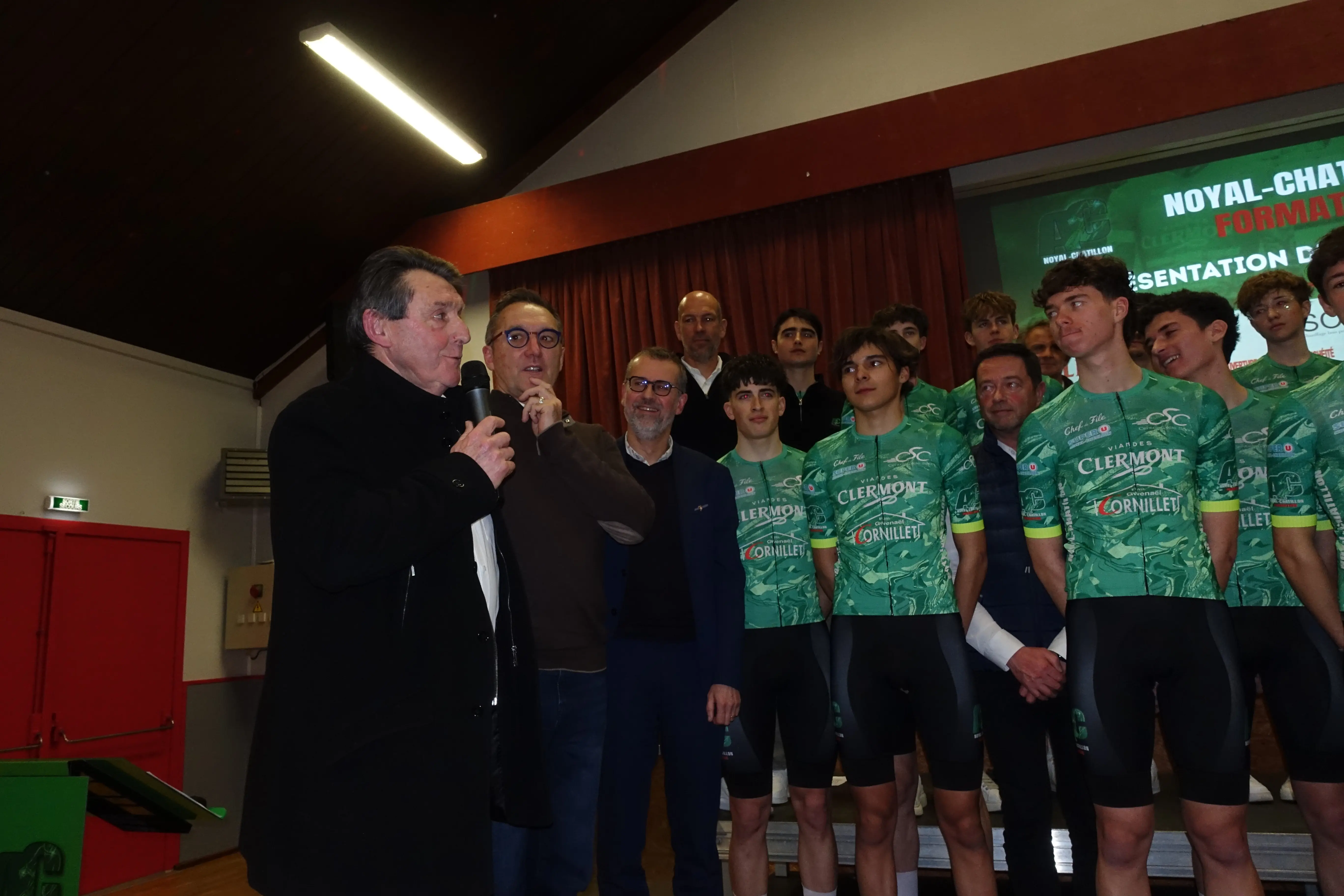 Maxime Heulot manager de l'équipe , accompagné de son père Stéphane Heulot, est ensuite intervenu pour rappeler les fondements du club, centrés sur la formation, tant sportive que professionnelle. Ils ont souligné qu’une carrière sportive n’est qu’une étape et qu’il est essentiel de préparer l’avenir . Une philosophie qui guide leur action depuis toujours et qui à contribuer à l'orientation de Stéphane vers la structure de Jean René Bernaudeau au sein de l'équipe Total Energie.